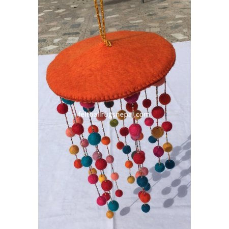 This is a attractive and decorative wind chime made with 2.2cm felt ball. It’s completely handmade with pure felt wool. It is home decorative colorful item. It can be use to decorate room, balcony, window and door. It’s mostly effective to decorate child room as they love colorful things. It is sew with beads in the strong nylon string by Nepalese women.
