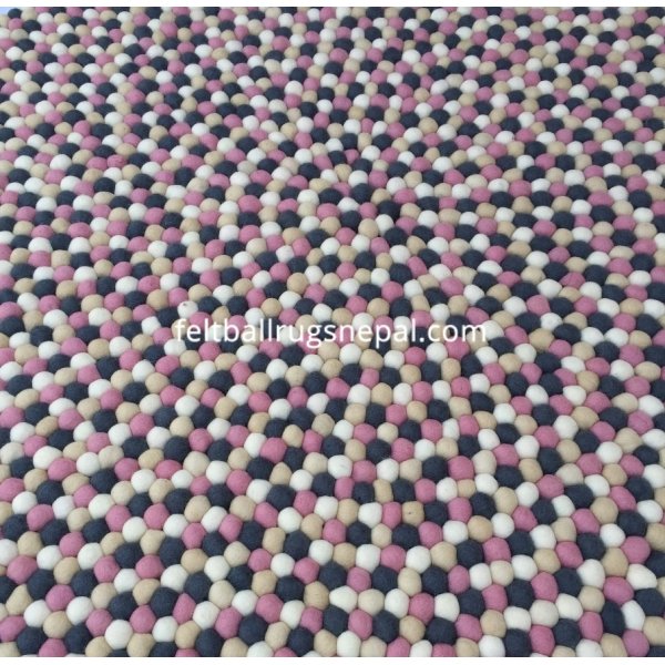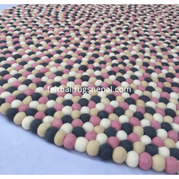 This Flamingo felt ball rug is made from four gorgeous colors: , White, off white, dark grey and bapy pink. Handmade in Nepal made from pure sheep wool which is imported from New Zealand. It is unique, soft and warm. Who loves soft color, it is just perfect for them. Available in different sizes.